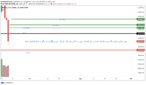اگر حد ضرر (Stop loss)  در سیگنال وجود نداشته باشد 3 امتیاز منفی میگیرند. اگر سیگنال به تارگت ها اصابت نکند یعنی انتظار سود تامین نشود ولی به حد ضرر برسد 1 امتیاز منفی . چنانچه سیگنال از اساس فنی نباشد( این نوع سیگنال ها به وفور دیده می شوند)، یعنی مثل مثال زیر که کانال با پیشنهاد لورج 20 برابر حد ضرر را 5 درصد زیر خرید تعیین کرده یعنی عملا تمام هست و نیست مشتری را به خطر انداخته است 10 امتیاز منفی میگیرد و دیگر تارگت ها ارزیابی نمی شوند.